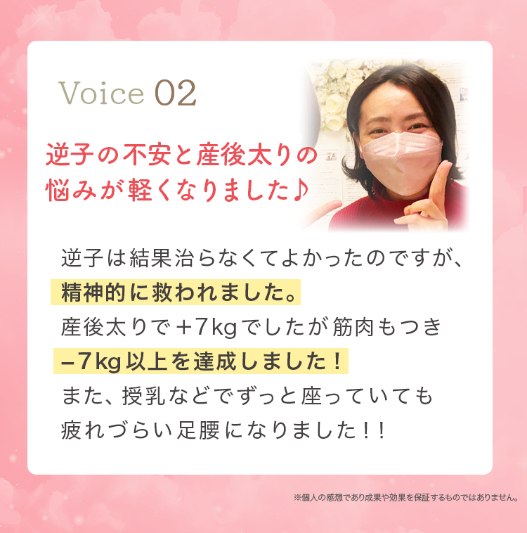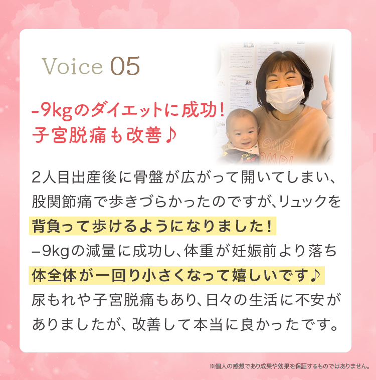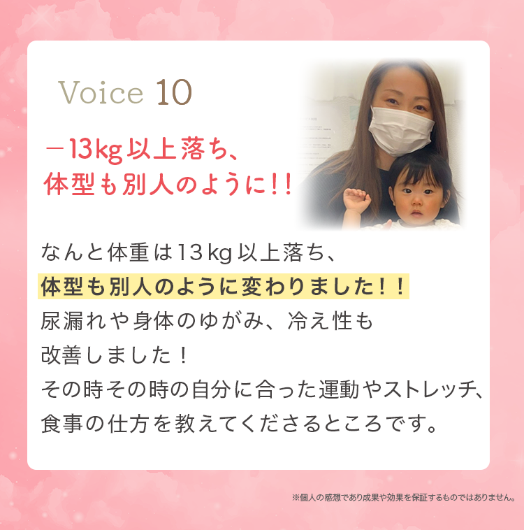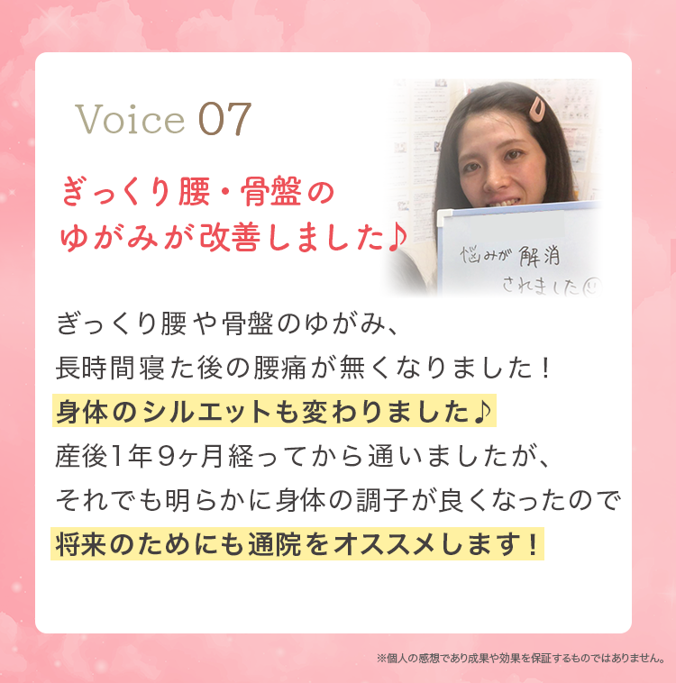 妊娠前には無かった痛みや、体の不調・体型の変化など産後の女性には多くのトラブルが起こっています。