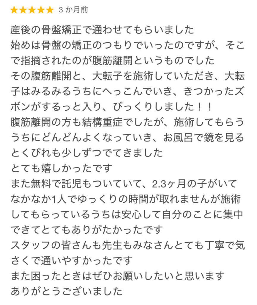 にもかかわらず、産後の体の女性の体についてしっかりとした技術と知識がない中で施術を行っている院がほとんどです。
