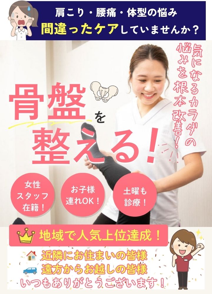 当院では開いていない骨盤を無理に閉めるのではなく、身体を優しく調整する整体です。