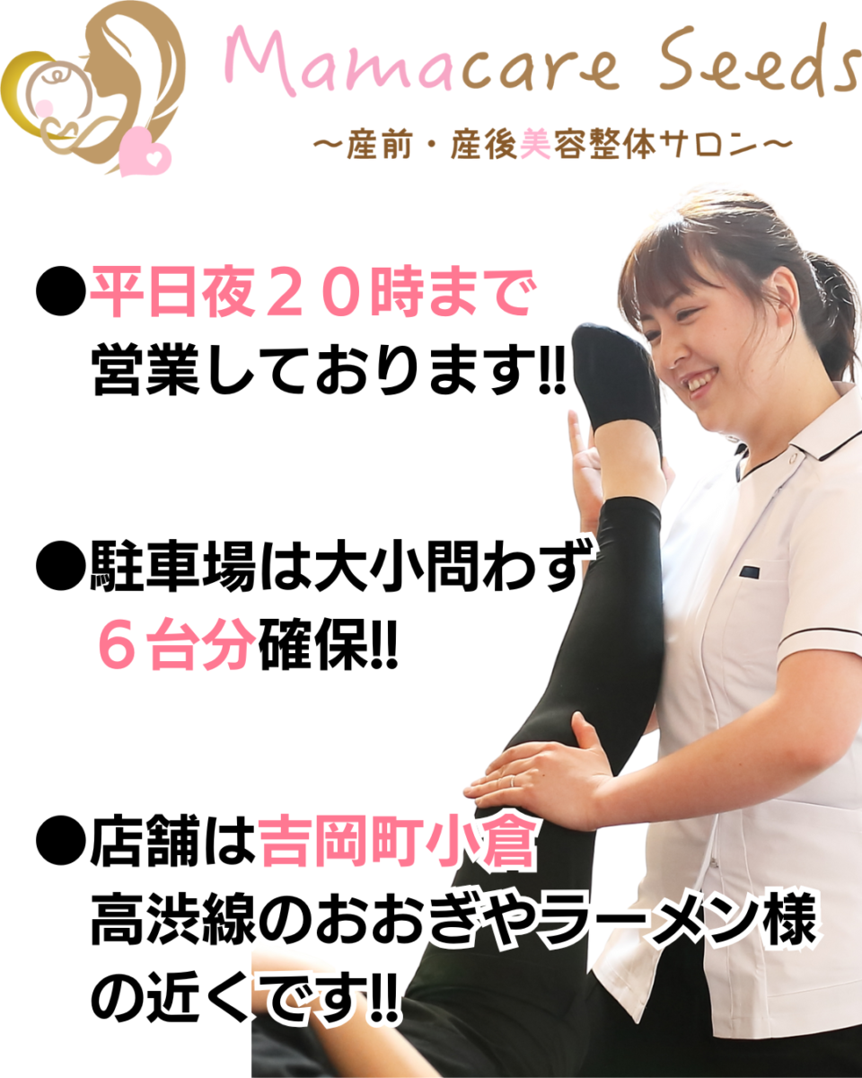 ↓ ↓ ↓ 店舗情報 院名産前産後美容整体 Mamacare Seeds所在地北群馬郡吉岡町小倉428-1メゾンド小倉1階姉妹店産前産後美容整体 Mamacare Seeds高崎玉村店代表田中 真稔院長田中 紗恵子駐車場大小問わず広々6台分あり