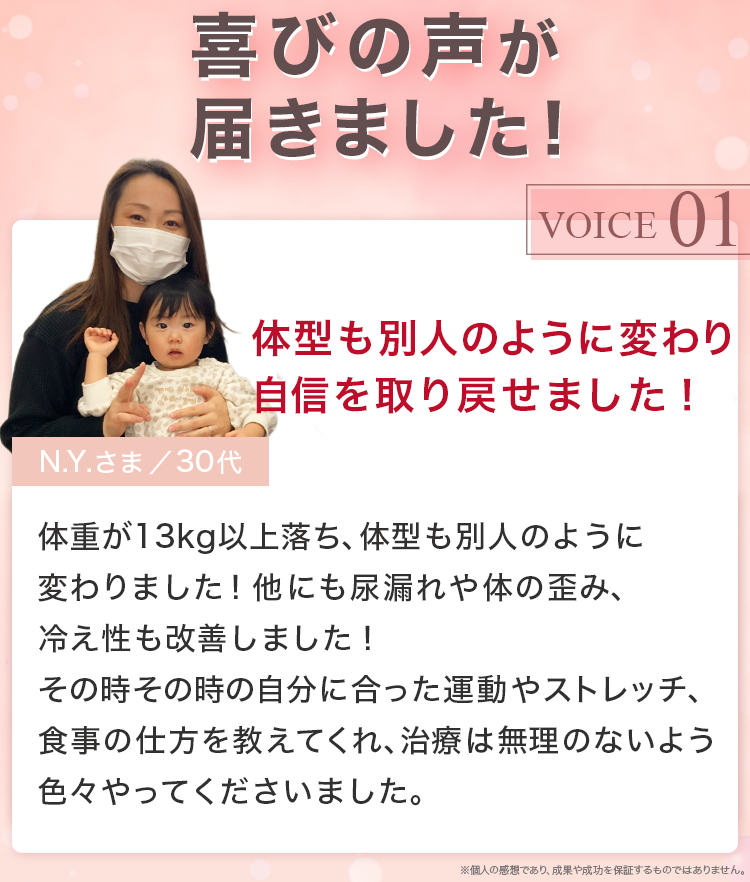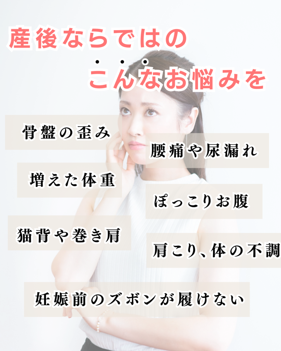 妊娠前には無かった痛みや、体の不調・体型の変化など産後の女性には多くのトラブルが起こっています。